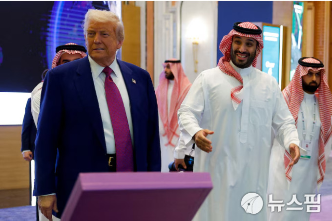 5월 13일 사우디 리야드에서 개최된 사우디-미국 투자 포럼에 참석한 빈 살만 왕세자와 도널드 트럼프 미 대통령 [서울=뉴스핌]박공식 기자 = 2025.11.04 kongsikpark@newspim.com