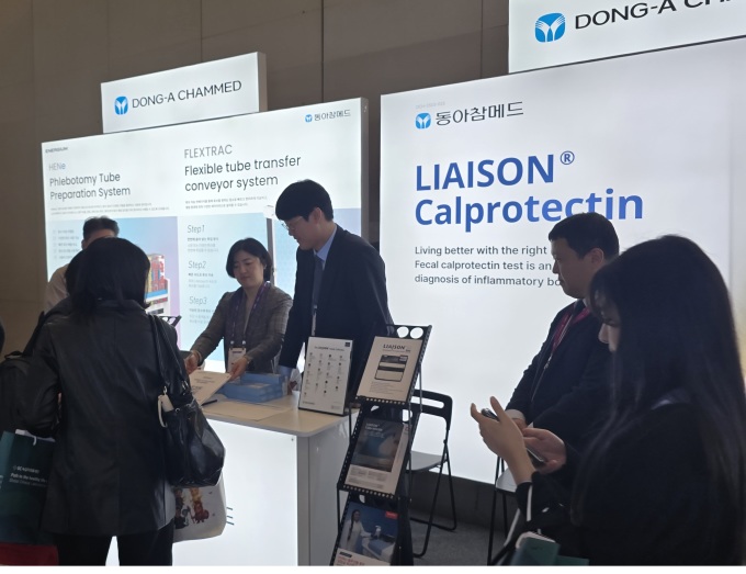 동아참메드는 이번 전시회에서 채혈 과정의 효율성을 향상시킨 장비 'HENe', 'FLEXTRAC', 자동화 면역장비 LIAISON XL에서 검사가 가능한 IBD 검사 시약 'LIASION Calpotectin'을 선보였다.