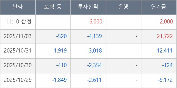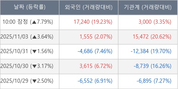 ※ 사모펀드 등 일부 기관의 순매매량은 표시되지 않음