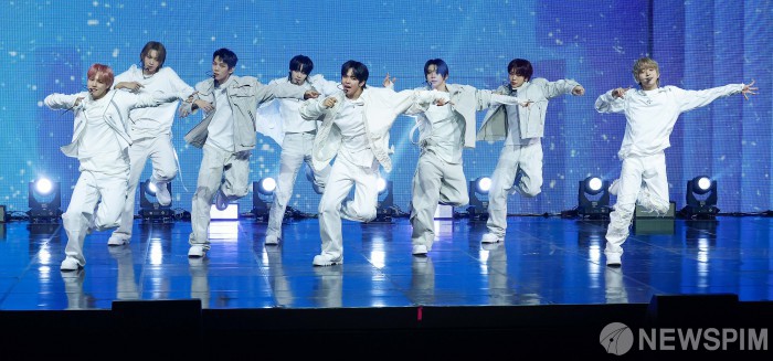 [서울=뉴스핌] 류기찬 기자 = 보이그룹 아홉(AHOF) 멤버들이 4일 오후 서울 광진구 예스24라이브홀에서 열린 미니2집 ‘The Passage' 발매 기념 미디어 쇼케이스에서 타이틀곡인 '피노키오는 거짓말을 싫어해’ 무대를 선보이고 있다. 타이틀곡인 '피노키오는 거짓말을 싫어해’는 동화 피노키오를 모티브 한 밴드 사운드의 곡으로 변덕과 불안, 흔들림 속에서도 ‘너’에게만은 솔직하고 싶은 마음을 아홉만의 감성으로 풀어낸 곡이다. 2025.11.04 ryuchan0925@newspim.com