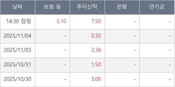 ※ 사모펀드 등 일부 기관의 순매매량은 표시되지 않음