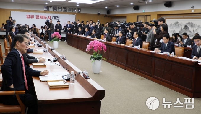 | [대전=뉴스핌] 오종원 기자 = 5일 오전 대전시청 대회의실에서 국민의힘 충청권 예산정책협의회가 열렸다. 2025.11.05 jongwon3454@newspim.com |