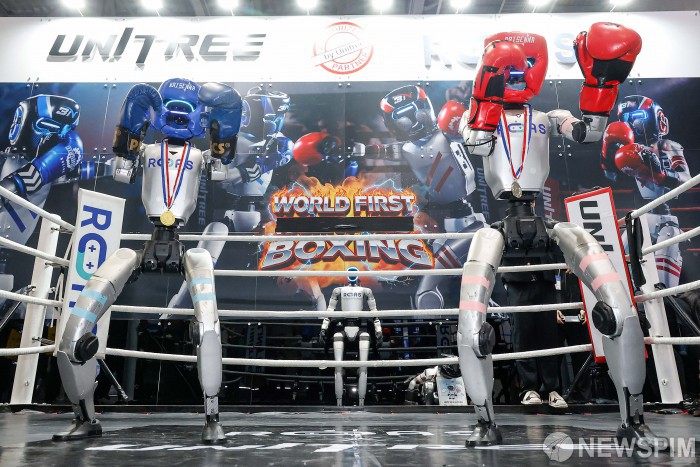 [고양=뉴스핌] 류기찬 기자 = 5일 오후 경기 고양시 킨텍스 제1전시장에서 열린 국내 최대 로봇산업 전시회 ‘2025 로보월드’에서 복싱 로봇들이 경기를 하고 있다. 이번 전시는 국내 최대 첨단기술 전시회 '대한민국 첨단기술 대전(RAD KOREA WEEK)'의 일환으로 개최되며, 로보월드, 디지털미디어테크쇼, 디지털퓨처쇼, 드론도심항공 모빌리티 박람회가 동시에 이루어진다. 2025.11.05 ryuchan0925@newspim.com