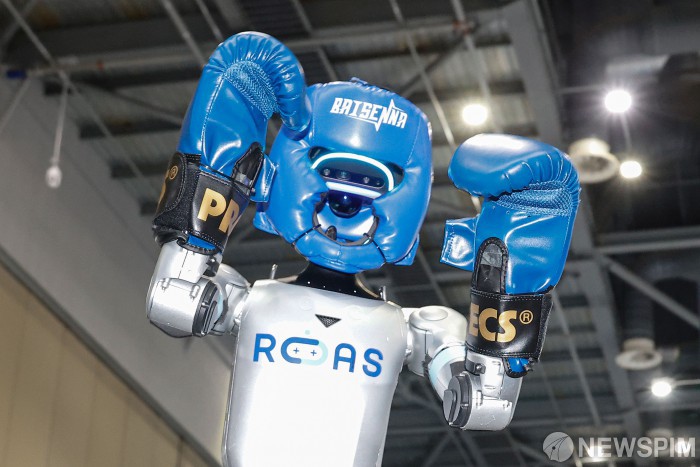 [고양=뉴스핌] 류기찬 기자 = 5일 오후 경기 고양시 킨텍스 제1전시장에서 열린 국내 최대 로봇산업 전시회 ‘2025 로보월드’에서 복싱 로봇들이 경기를 하고 있다. 이번 전시는 국내 최대 첨단기술 전시회 '대한민국 첨단기술 대전(RAD KOREA WEEK)'의 일환으로 개최되며, 로보월드, 디지털미디어테크쇼, 디지털퓨처쇼, 드론도심항공 모빌리티 박람회가 동시에 이루어진다. 2025.11.05 ryuchan0925@newspim.com