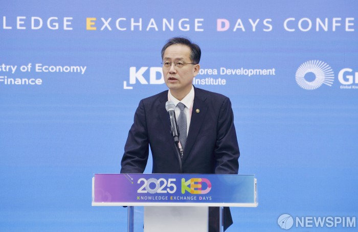 [서울=뉴스핌]이형일 기획재정부 차관이 6일 오전 서울 동대문구 글로벌지식협력단지에서 열린 '지식 교류의 날'에 참석해 개회사를 하고 있다.[사진=기획재정부 ] 2025.11.06 photo@newspim.com