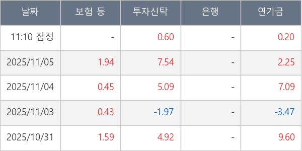 ※ 사모펀드 등 일부 기관의 순매매량은 표시되지 않음