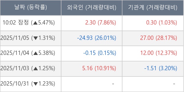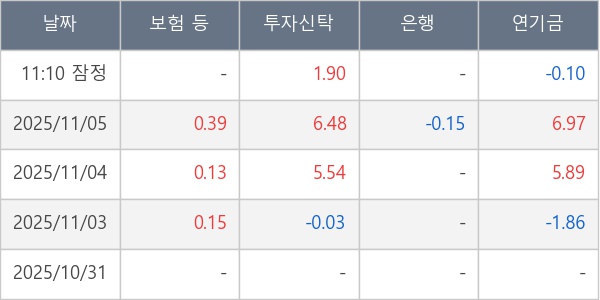 [표] 주요 기관별 순매매량 (단위 만주)