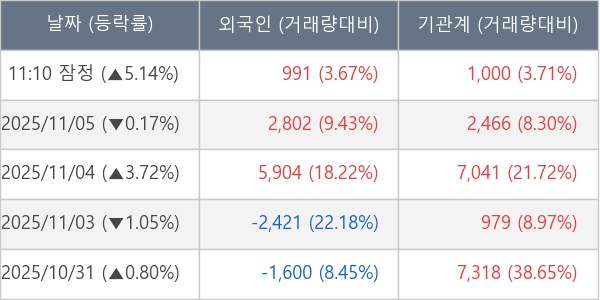 ※ 사모펀드 등 일부 기관의 순매매량은 표시되지 않음