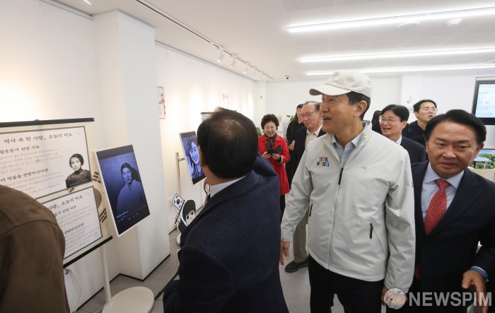 [서울=뉴스핌] 최지환 기자 = 오세훈 서울시장이 6일 오후 서울 서대문구 홍제폭포 복합문화센터 앞에서 열린 홍제폭포 복합문화센터 개관식을 마치고 홍제폭포 복합문화센터를 둘러보고 있다. 2025.11.06 choipix16@newspim.com