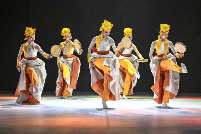장검과 맞춘 듯 길게 빼낸 장검무의 머리장식과 무당들이 서로 다른 의상도 눈길을 끈다. 유쾌한 농민들의 에너지를 살린 소고춤, 살풀이춤의 검은 시스루 한복에 이어 태평무의 복식에선 화려함과 절제미를 동시에 느낄 수 있다.
