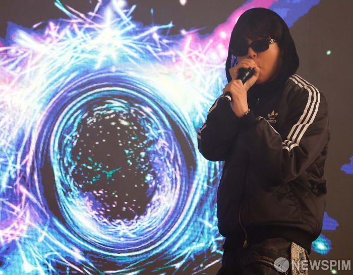 [성남=뉴스핌] 류기찬 기자 = 2025년 한국 비트박스 챔피언 잭브라이언이 6일 오후 경기 성남시 수정구 성보경영고등학교에서 열린 '2025 경기도교육청 찾아가는 생명존중 캠페인'에서 무대를 펼치고 있다. 2025.11.06 ryuchan0925@newspim.com
