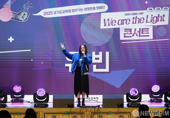 [성남=뉴스핌] 류기찬 기자 = 걸그룹 원더걸스 출신 유빈이 6일 오후 경기 성남시 수정구 성보경영고등학교에서 열린 '2025 경기도교육청 찾아가는 생명존중 캠페인'에서 강연을 하고 있다. 2025.11.06 ryuchan0925@newspim.com