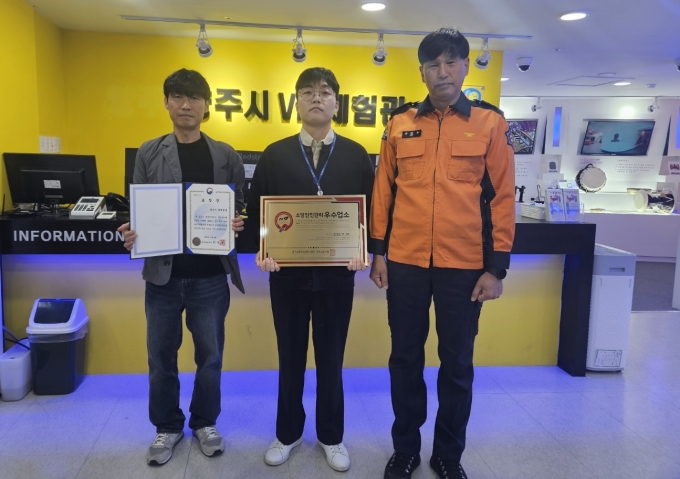 [양주=뉴스핌]신선호 기자=양주소방서는 6일 2025년도 다중이용업소 안전관리 우수업소로 새롭게 선정된 '양주시 VR체험관'(덕계동 소재)에 안전관리 우수업소 인증표지를 부착하고 표창장을 수여했다.