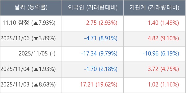 ※ 사모펀드 등 일부 기관의 순매매량은 표시되지 않음