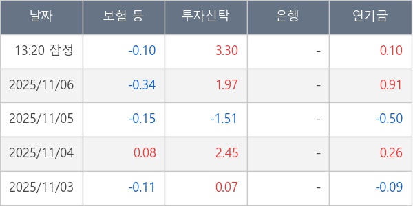 [표] 주요 기관별 순매매량 (단위 만주)