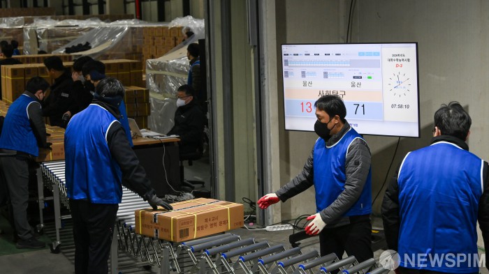 [세종=뉴스핌] 김학선 기자 = 2026학년도 대학수학능력시험을 사흘 앞둔 10일 오전 세종시의 한 인쇄공장에서 관계자들이 수능 문제지와 답안지를 전국 시도 교육청으로 배부하기 위해 차량으로 옮기고 있다. 교육부는 2026학년도 수능이 오는 13일 전국 85개 시험지구 1310개 시험장에서 일제히 치러진다고 밝혔다. 올해 수능 응시생은 총 55만 4174명으로, 지난해 52만 2670명 보다 3만 1504명 늘었다. 2025.11.10 yooksa@newspim.com