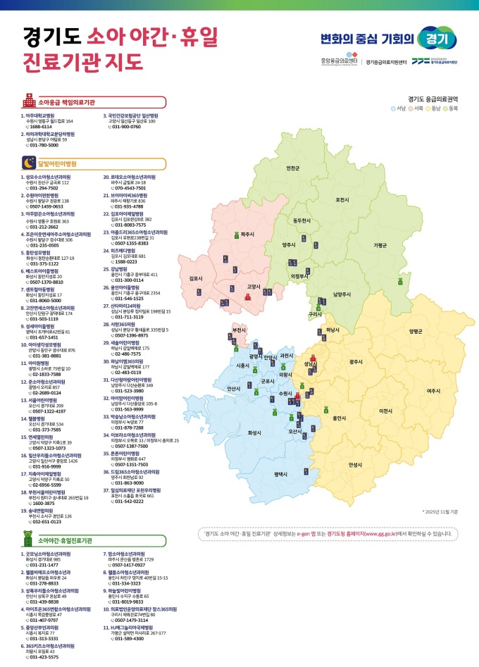 | 경기도 소아 야간휴일 진료기관 지도(25.11월). [사진=경기도] |