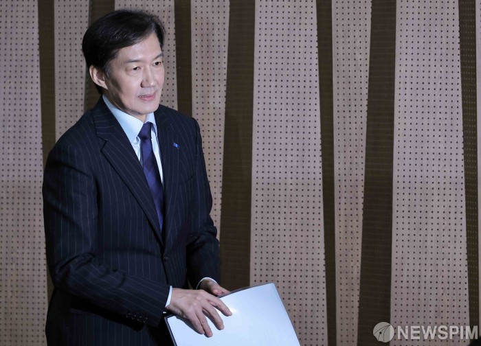 [서울=뉴스핌] 윤창빈 기자 = 조국 전 조국혁신당 비상대책위원장이 10일 오전 서울 여의도 국회에서 당대표 출마 선언을 위해 들어서고 있다. 2025.11.10 pangbin@newspim.com