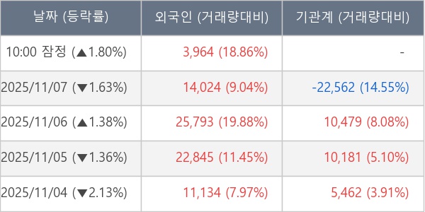 [표] 외국인ㆍ기관 순매매량 (단위 주)
