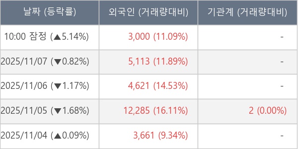 [서울=뉴스핌] 로보뉴스 = 10일 10시 15분 현재 케이사인(192250)은 전일 대비 5.14% (현재가 11,450원) 상승했고, 외국인이 최근 6일 연속 순매수(누적 46,207주, 잠정) 행진을 하고 있다.