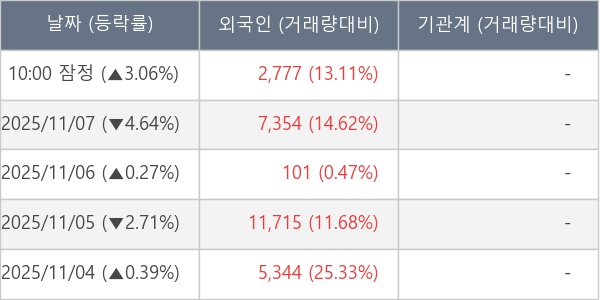 [표] 외국인ㆍ기관 순매매량 (단위 주)