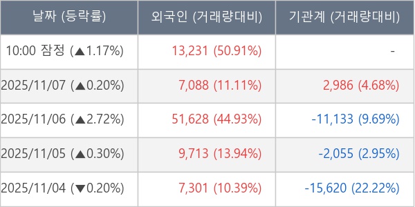 [표] 외국인ㆍ기관 순매매량 (단위 주)