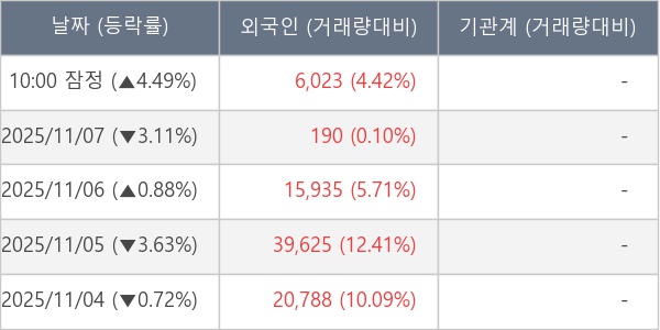 [표] 외국인ㆍ기관 순매매량 (단위 주)