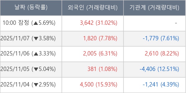 [표] 외국인ㆍ기관 순매매량 (단위 주)