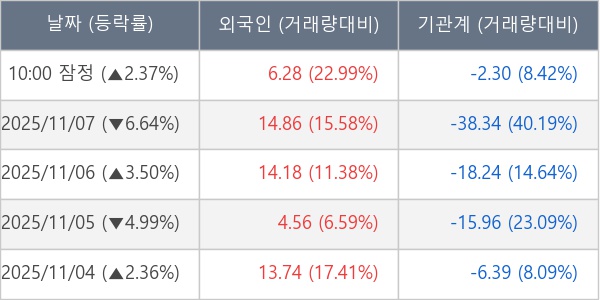 ※ 사모펀드 등 일부 기관의 순매매량은 표시되지 않음