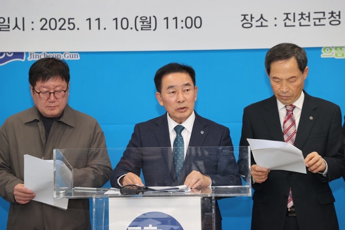 | 기자회견 하는 송기섭 진천군수. [사진=진천군] 2025.11.10 baek3413@newspim.com |