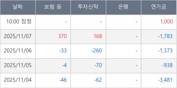 ※ 사모펀드 등 일부 기관의 순매매량은 표시되지 않음