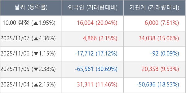 ※ 사모펀드 등 일부 기관의 순매매량은 표시되지 않음