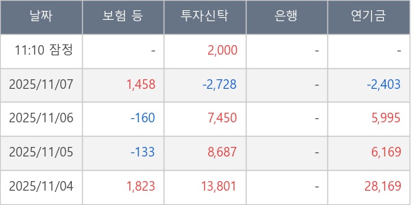 [표] 주요 기관별 순매매량 (단위 주)