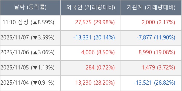 ※ 사모펀드 등 일부 기관의 순매매량은 표시되지 않음