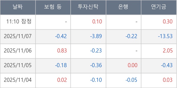 ※ 사모펀드 등 일부 기관의 순매매량은 표시되지 않음