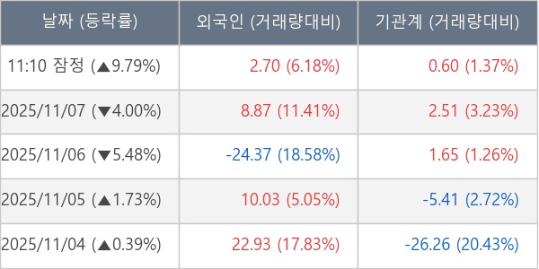 ※ 사모펀드 등 일부 기관의 순매매량은 표시되지 않음