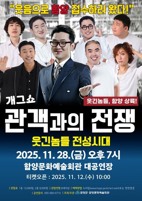 [함양=뉴스핌] 정철윤 기자 = 경남 함양문화예술회관은 오는 28일 대공연장에서 개그쇼 '관객과의 전쟁'을 진행한다고 10일 밝혔다.