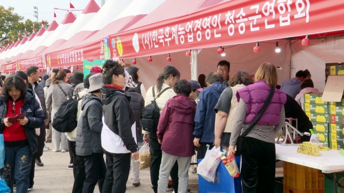 특히 방문객들은 '대한민국 대표 브랜드' 13년 연속 대상을 수상한 '청송 사과'를 시중가보다 저렴하게 구입할 수 있어 큰 호응을 보였다.