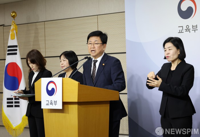 [서울=뉴스핌] 최교진 교육부 장관이 10일 세종청사 교육부 브리핑실에서 모두를 위한 인공지능(AI) 인재양성 방안 브리핑을 하고 있다. [사진=교육부] 2025.11.10 photo@newspim.com