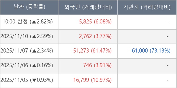 [표] 외국인ㆍ기관 순매매량 (단위 주)