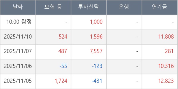 [표] 주요 기관별 순매매량 (단위 주)