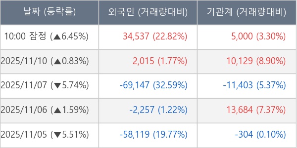 ※ 사모펀드 등 일부 기관의 순매매량은 표시되지 않음
