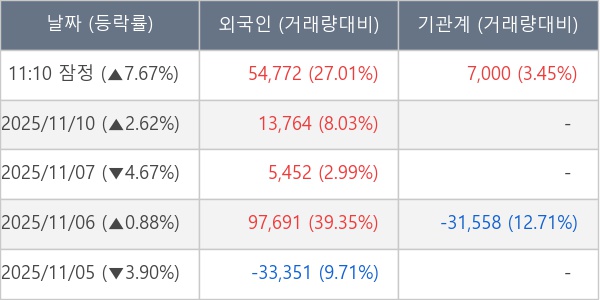 ※ 사모펀드 등 일부 기관의 순매매량은 표시되지 않음