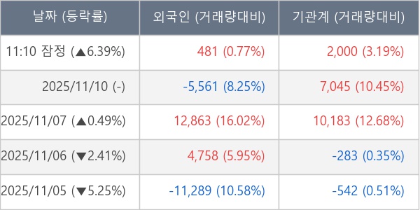 ※ 사모펀드 등 일부 기관의 순매매량은 표시되지 않음