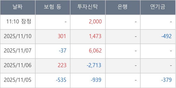 [표] 주요 기관별 순매매량 (단위 주)