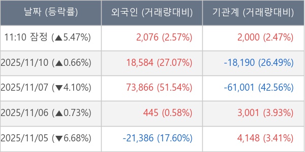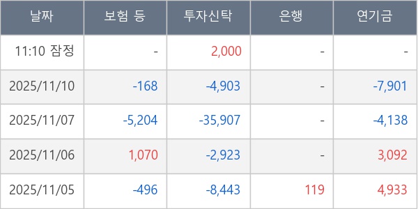 ※ 사모펀드 등 일부 기관의 순매매량은 표시되지 않음