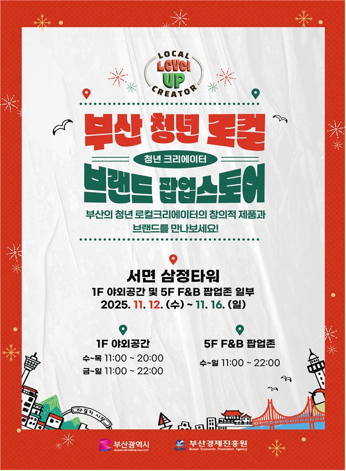 [부산=뉴스핌] 남동현 기자 = 부산시와 부산경제진흥원은 12일부터 16일까지 서면 삼정타워에서 '2025 부산 청년 로컬 브랜드 팝업스토어'를 개최한다고 밝혔다.