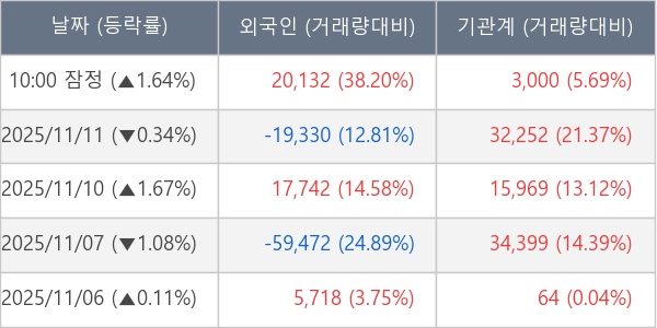[표] 주요 기관별 순매매량 (단위 주)