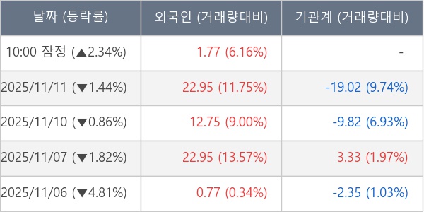 [표] 외국인ㆍ기관 순매매량 (단위 만주)