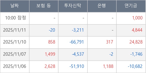 [표] 주요 기관별 순매매량 (단위 주)